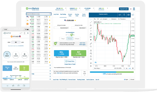 تذكرة التداول الأكثر ابتكارًا من easyMarkets حتى الآن. تداول من دون متطلبات الهامش، بفروق صفرية ومع مبلغ المخاطر الذي تحدده وتثبته قبل التداول. قم بإجراء صفقة في 4 خطوات بسيطة: اختر أداتك، حدد مبلغ المخاطرة الخاص بك، اختر مدة الصفقة وإذا كنت تريد "شراء" أو "بيع"!